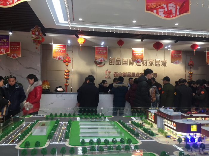 2018年2月4日,立春。創品國際項目一期盛大開盤,現場800余商戶、投資客、新聞媒體齊聚一堂,共同見證衡山首個建材家居專業市場開盤這一商業盛況。