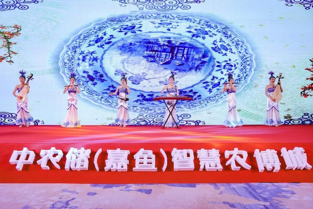 以鼓會(huì)友,鼓動(dòng)未來(lái)。中農(nóng)儲(chǔ)·嘉魚智慧農(nóng)博城農(nóng)副產(chǎn)品交易中心項(xiàng)目推介會(huì)在磅礴大氣的《龍鼓舞表演》拉開帷幕。