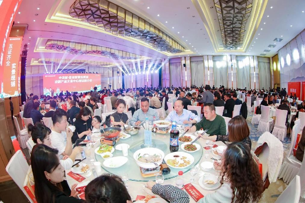晚宴正式開始后,一道道烹飪考究的精致菜肴華美呈現(xiàn),觥籌交錯(cuò)之間,嘉賓們笑語(yǔ)盈盈、相談甚歡。購(gòu)鋪基金也隨晚宴中正式開始抽取,幸運(yùn)兒一個(gè)個(gè)解密,既緊張又幸福的時(shí)刻,讓大家流連忘返!本次農(nóng)副產(chǎn)品交易中心項(xiàng)目推介會(huì)圓滿禮成!